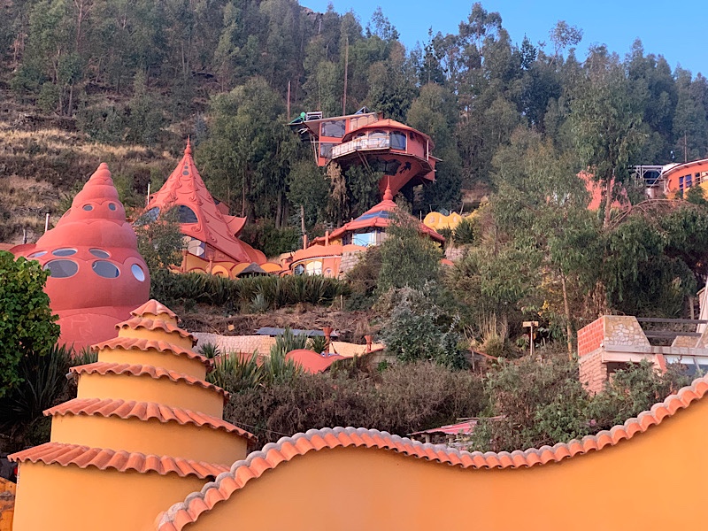 Und bald sitzen wir wieder im Bus nach La Paz. Kämpfen uns durch den Verkehr und Strassenfeste über El Alto, hinab ins Tal. Dort beziehen wir unsere „Präsidentensuite“, denn wir lernen, dass wir ohne es zu wissen im Haus der ehemaligen Präsidentin leben…