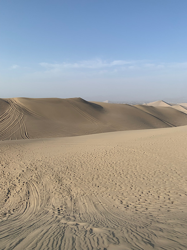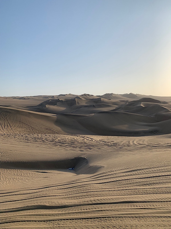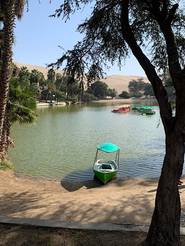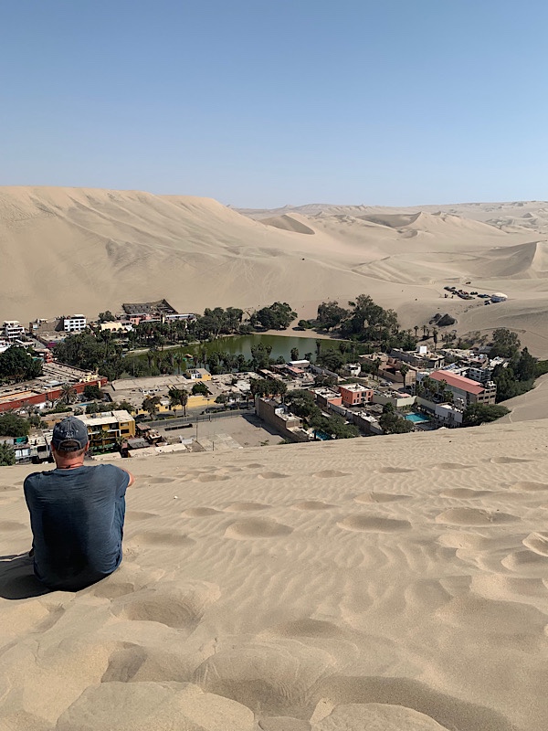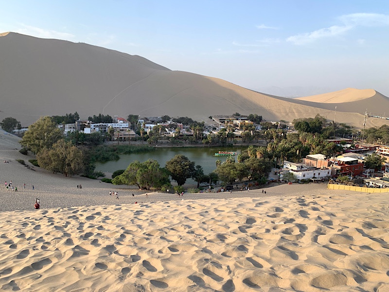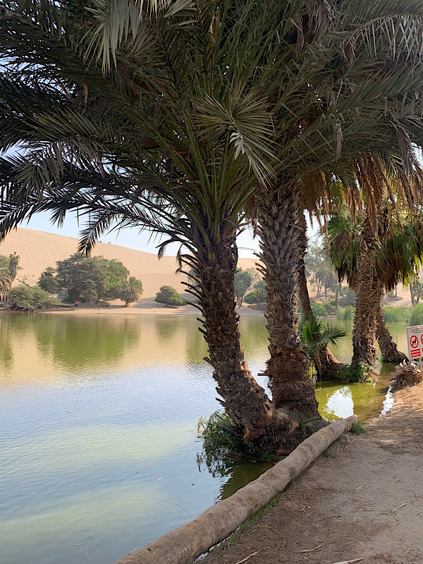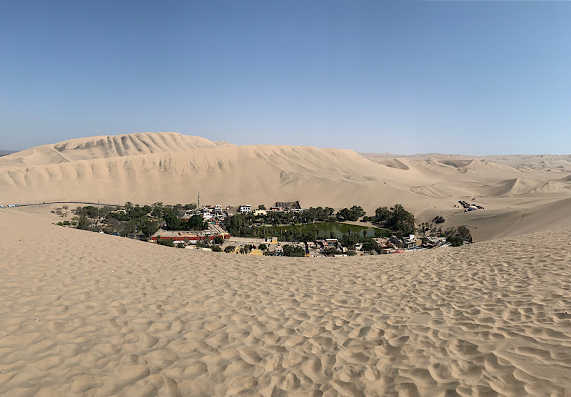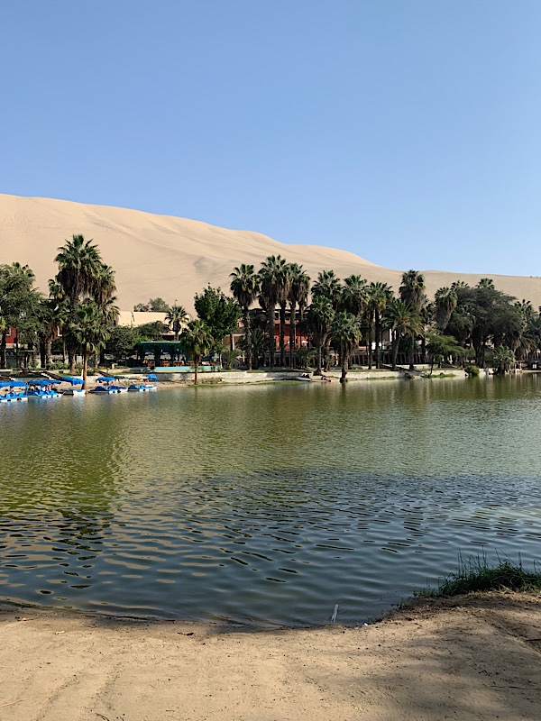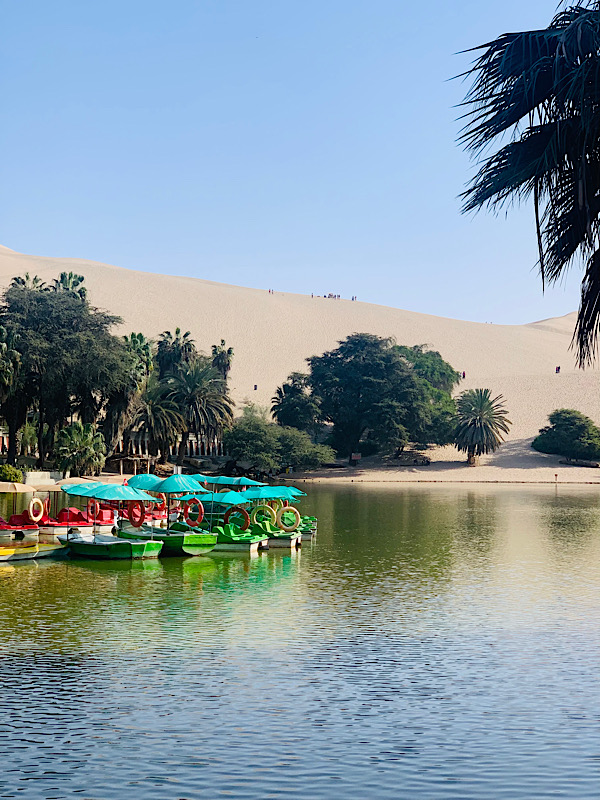 Von Paracas aus fahren wir morgens mit dem Minibus nach Ica zur Oase von Huacachina. Die Oase liegt ca. fünf Kilometer von Ica entfernt. Sie ist auch bekannt für Sandboarding und aufregende Buggy-Fahrten durch die Dünen.