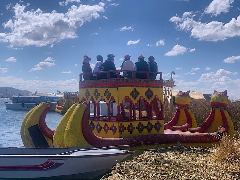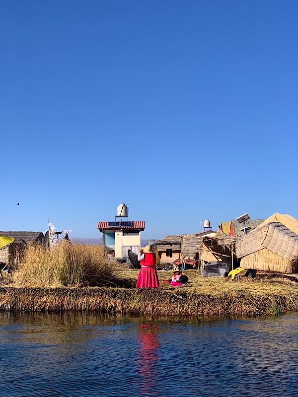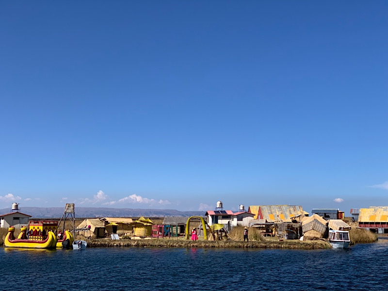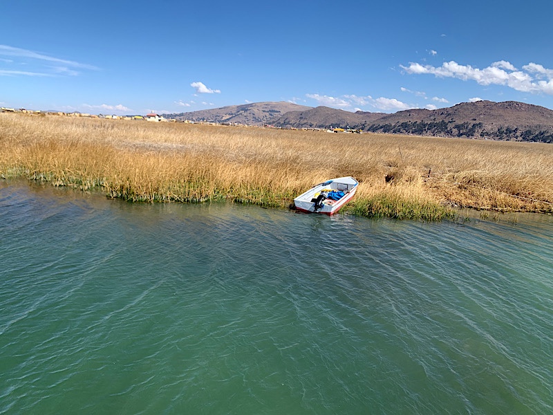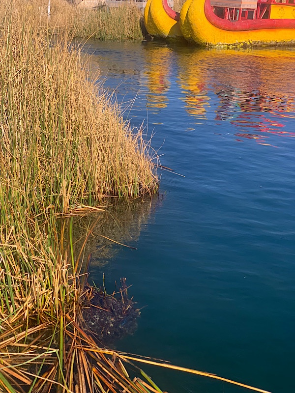 Gegen 13 Uhr machen wir uns auf zum Hafen. Online kann man Touren zu den schwimmenden Inseln des Volkes buchen, die 60 Dollar pro Person kosten. Am Hafen zahlen wir 2,49 Euro für das Schiff und 1,99 Eintritt. Wie immer: Schön blöd, wer meint Touren von zuhause buchen zu müssen. Wir tuckern hinaus und ich während das Boot durch einen Schilffreien Kanal inmitten des Sees fährt, fühle ich mich ein wenig wie zuhause.