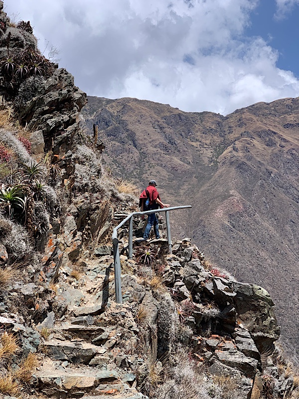 Hinab vom Machu Picchu. Viele viele Treppen mit Schlange auf dem Weg, bunten Vögeln in den Bäumen und Pampashasen. Wir erreichen den Grund und am nächsten Morgen geht es an den Schienen zurück nach Hidroelectrica.